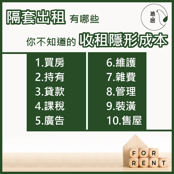 以下澔居就用圖片簡單告訴你 你不知道的收租隱藏成本